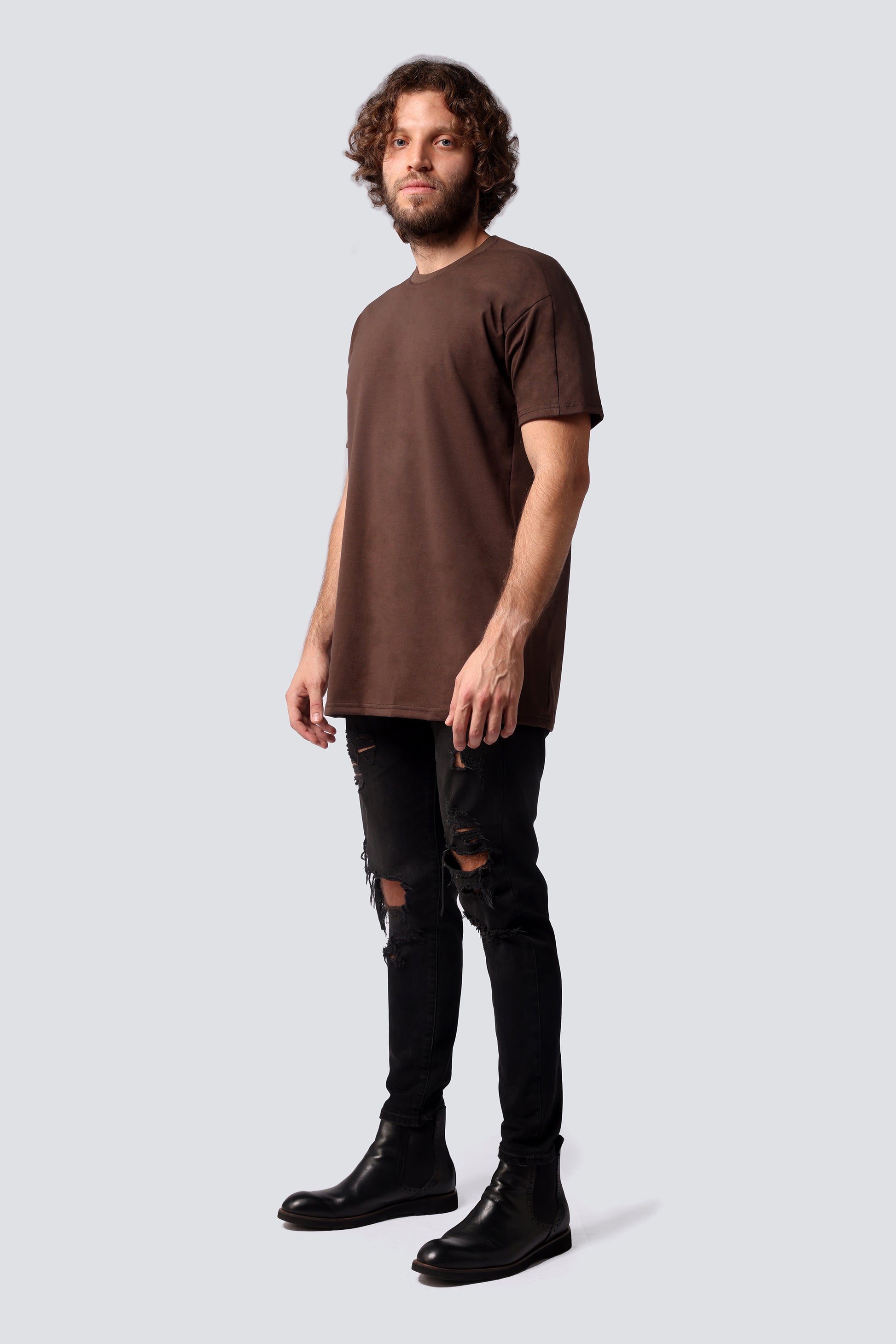 Details really do matter. The shoulders and sides are outlined in a tone on tone band that give this t-shirt an unparalleled loose fit while maintaining the right balance around the shoulders. The neck is double coated in the same textile to add a touch of rigidity and weight to the design. This piece will add the missing touch to your outfit. It can be worn on jeans, pants, skirts for streetwear, trendy, rocker looks OR with shorts, sweatpants, leggings for timeless sporty and athleisure looks.