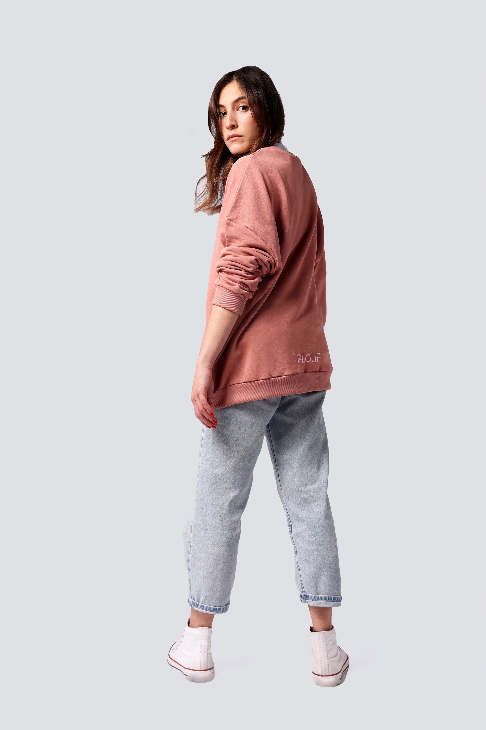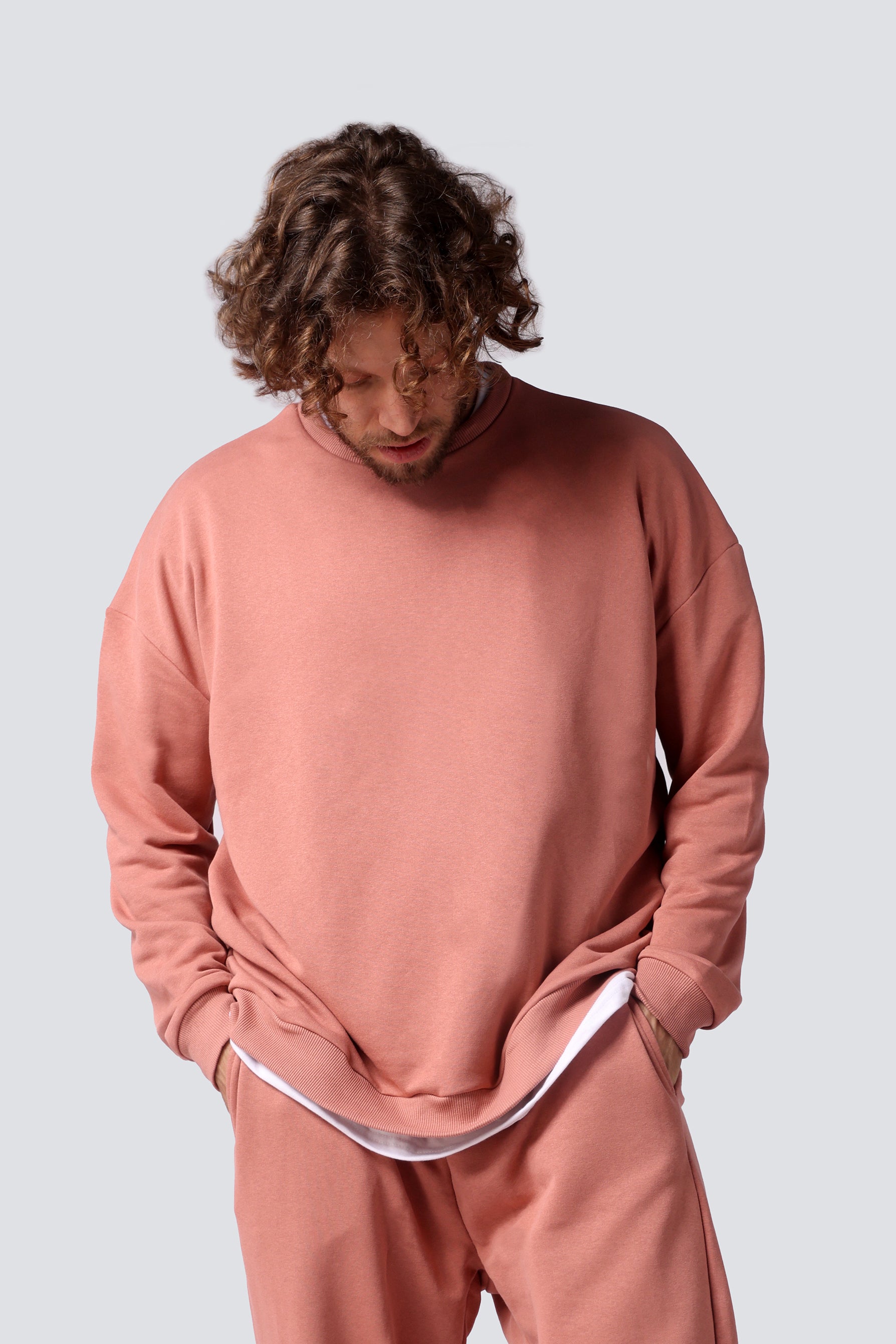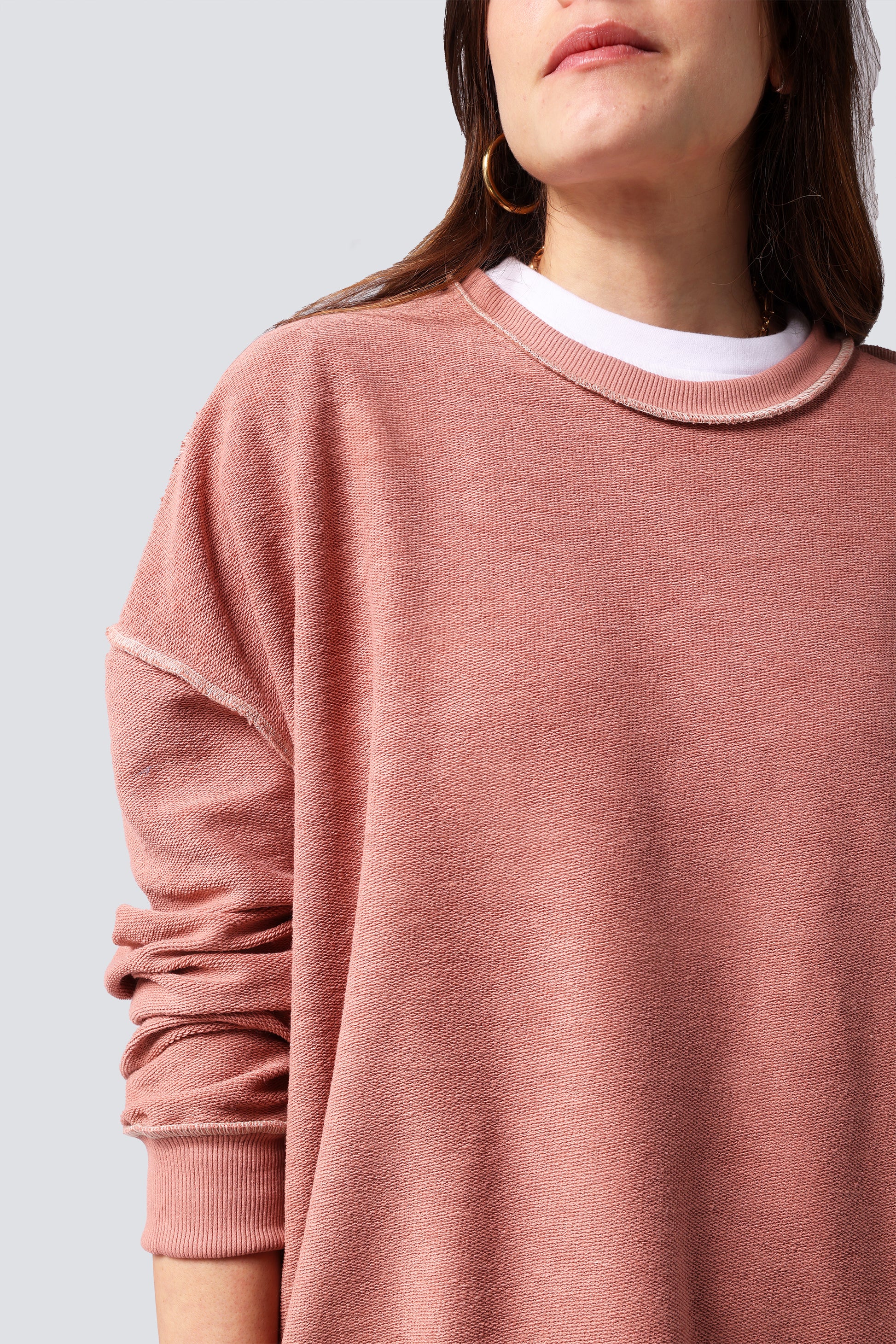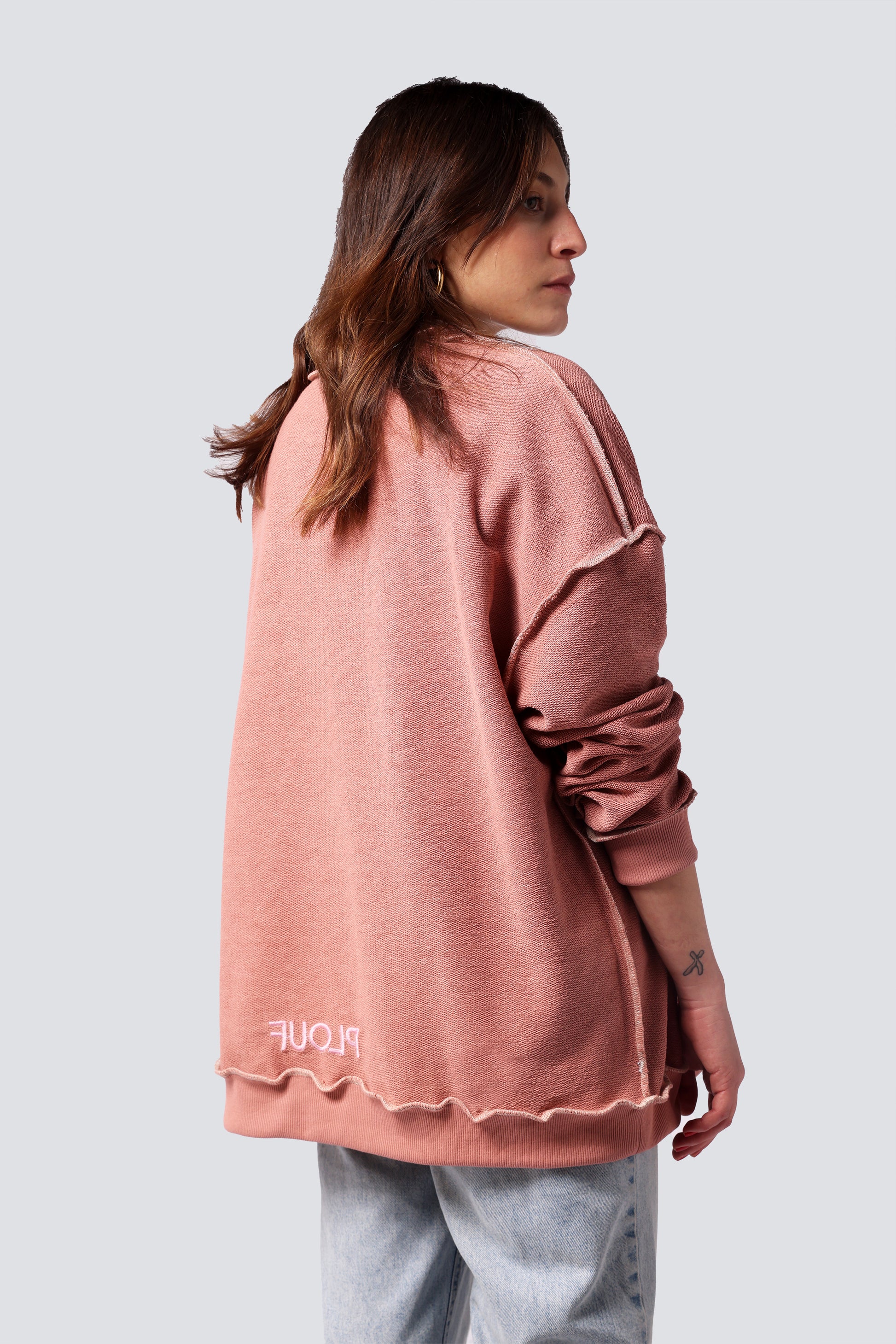OVERSIZED ON BOTH SIDES SWEATSHIRT OLD PINK | REVERSIBLE OFF WHITE STITCHING ON INSIDE