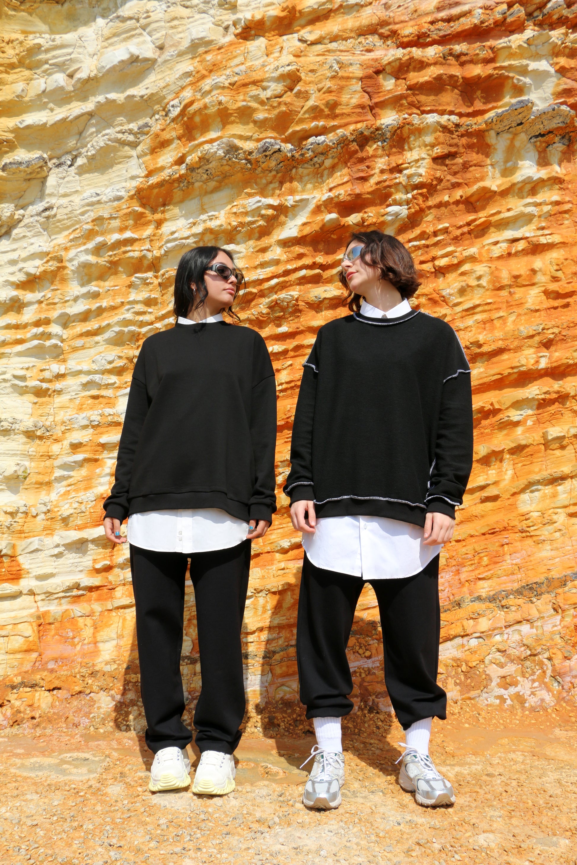 OVERSIZED ON BOTH SIDES SWEATSHIRT BLACK | REVERSIBLE WHITE STITCHING ON INSIDE