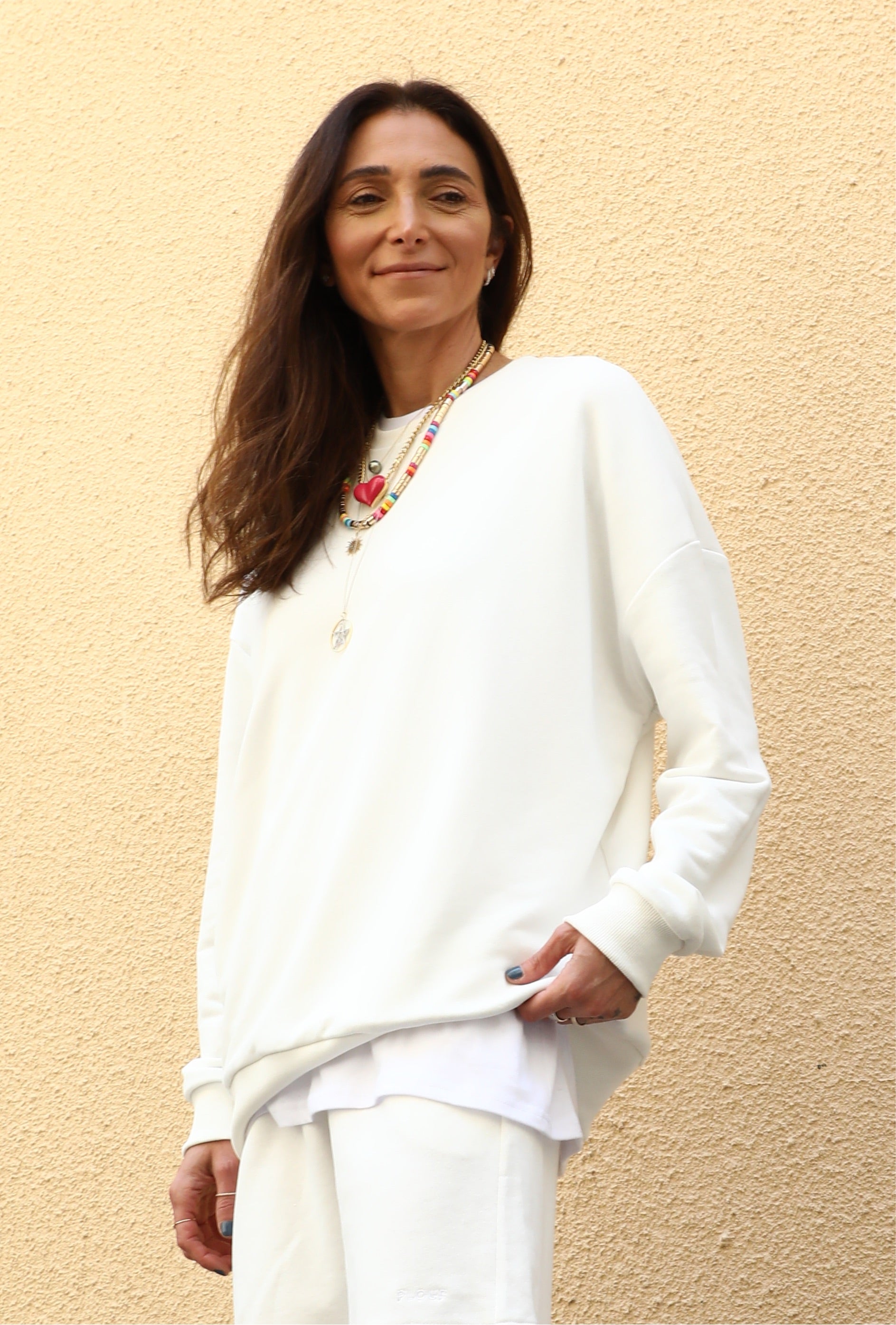 OVERSIZED ON BOTH SIDES SWEATSHIRT OFF WHITE | REVERSIBLE WHITE STITCHING ON INSIDE